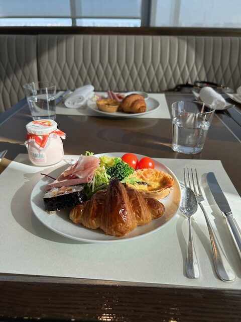朝食はブッフェでしたが、素材にこだわった上質な料理でした。オムレツは別で調理してくださり、朝の景色を眺めながらの食事は、一日の始まりを最高のものにしてくれました。