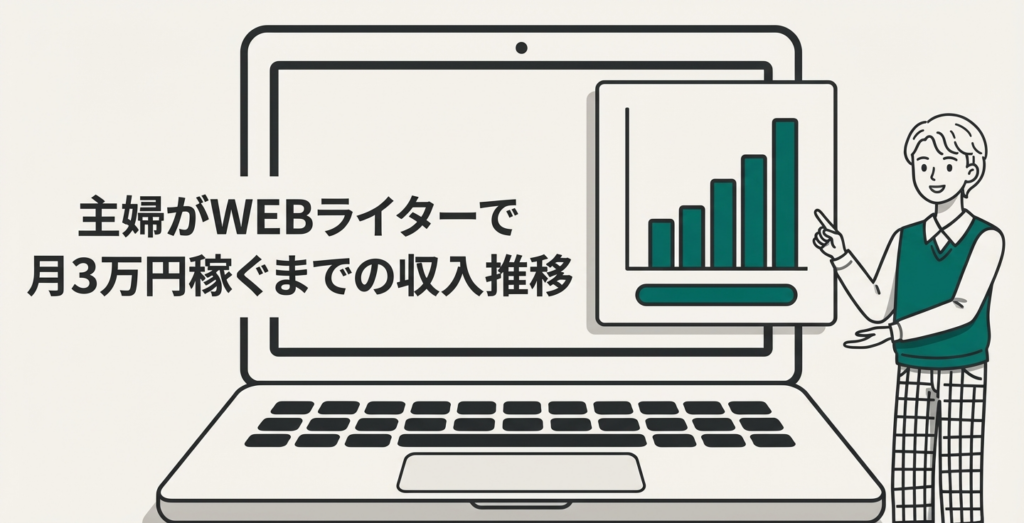 実際にWEBライティング技能検定に合格した主婦が、月3万円を稼ぐまでの収入推移を紹介します。1ヶ月目は案件探しと慣れに時間がかかり、収入は5,000〜10,000円程度です。文字単価0.5〜0.8円の初心者向け案件を2〜3件こなす段階といえます。